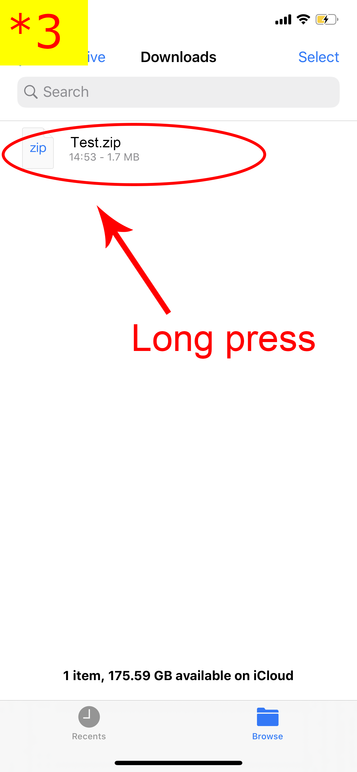 3.文件應用程序將啟動,選擇一個文件並按住。 (* 3)
