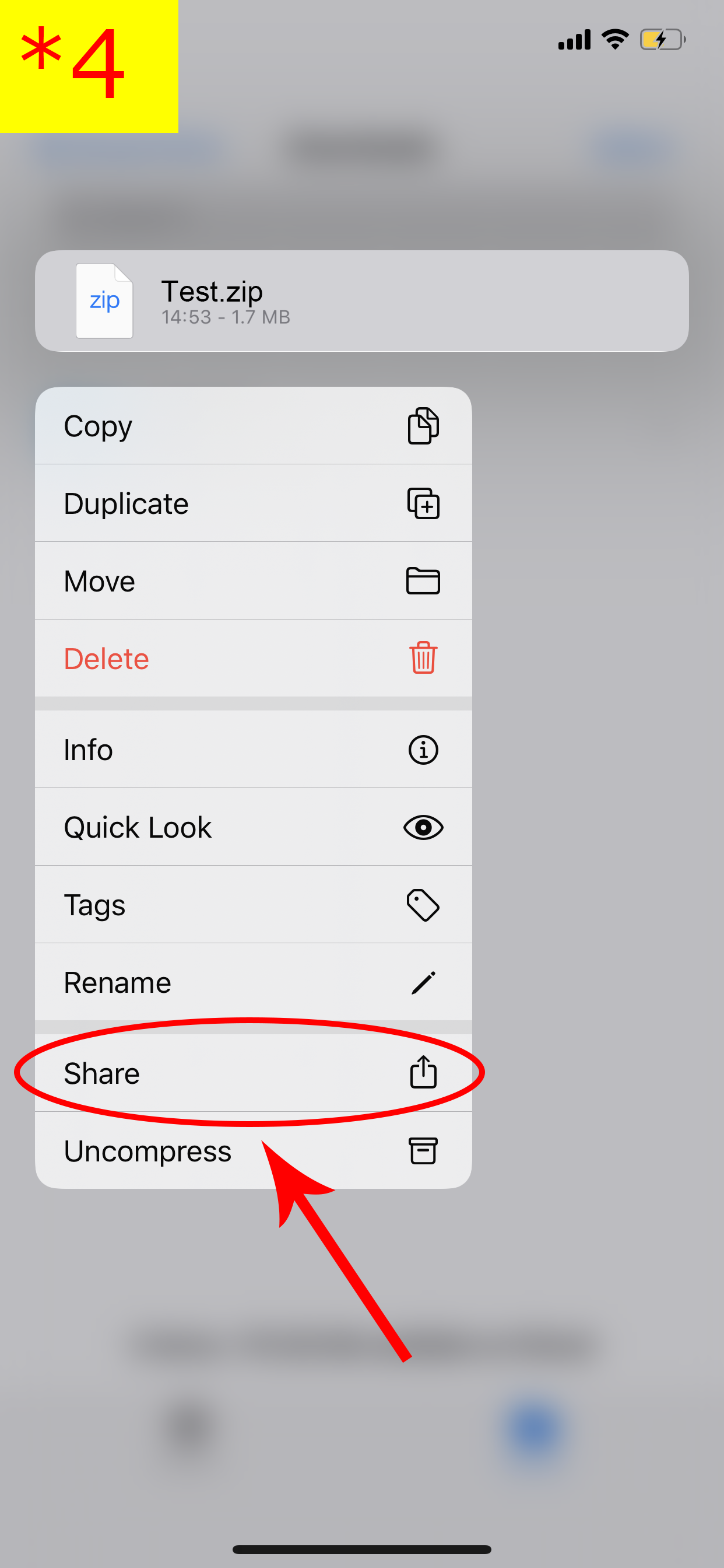 4.從菜單中選擇共享。 (* 4)